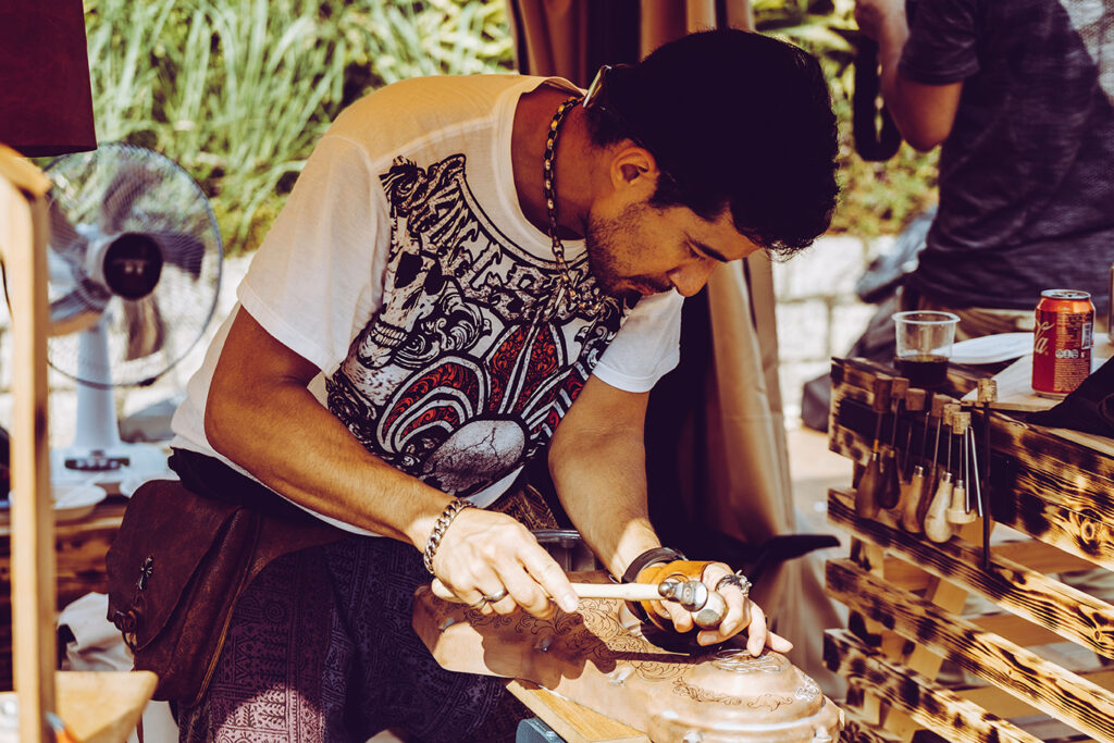 在香港鮮有專業的金屬雕刻師存在,Carlos會學習這門手藝的契機也源自於喜歡Harley電單車,「外國很流行在Harley刻上Metal Tattoo,原先我想將部分零件拆出送至外國雕刻,豈料那張報價單已把我嚇跑。因為我本身是位演員,空閒的時間就想想到底可以做甚麼,便萌生出自學的念頭。」惟萬事起頭難,特別是香港沒有這門教學,即使Carlos參考社交平台短片,遇上難題也是無從稽查確實答案,「後來我找尋一位國際重量級雕刻大師,他身在峇里,經過我一番誠意,終於成功拜師學藝。」