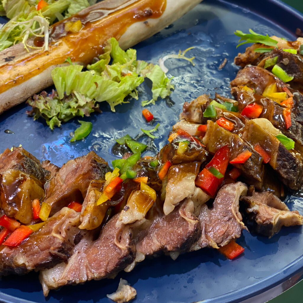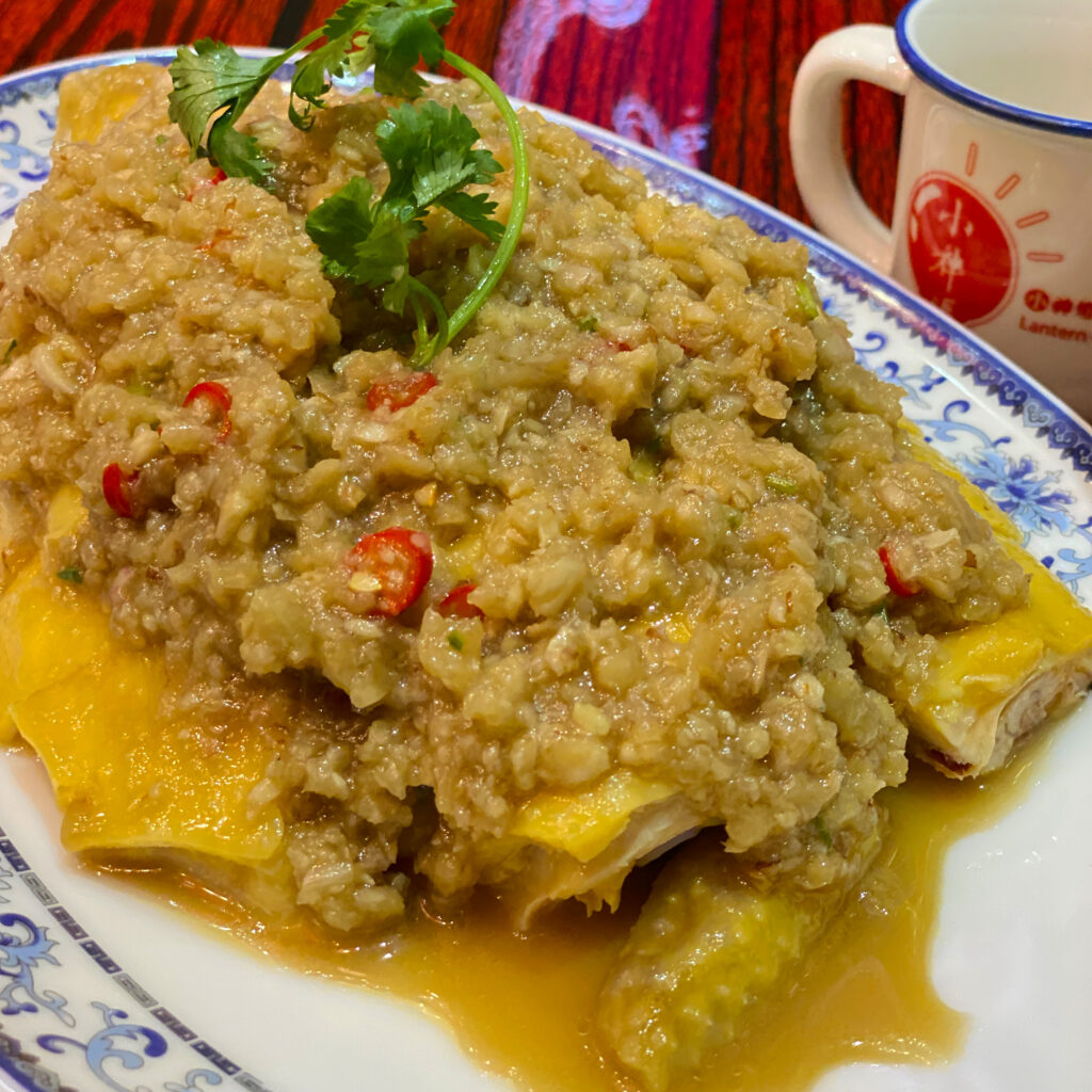 至於另一道「蔥蒜水晶雞」便是名副其實的「雞有雞味」,有別於傳統雞肉的做法,飯館選用走地三黃雞,再用上陳皮、甘草、花椒八角等香料浸入味,然後鋪上經過爆香的蔥蒜,增加香味、甜味又有微辣,刺激食慾又夠開胃。當然飯館不會忘記許多港人都是「牛魔王」,嚴選中菜少見的不同靚牛部部位,如牛肝連、牛肋骨、牛面珠等以中西合璧方式炮製,其中的「原條燒 Prime 牛肋骨」油花分佈均勻、肉味濃郁,恰到好處的火口既完美保留原有肉汁和肉香,口感又夠軟腍。
