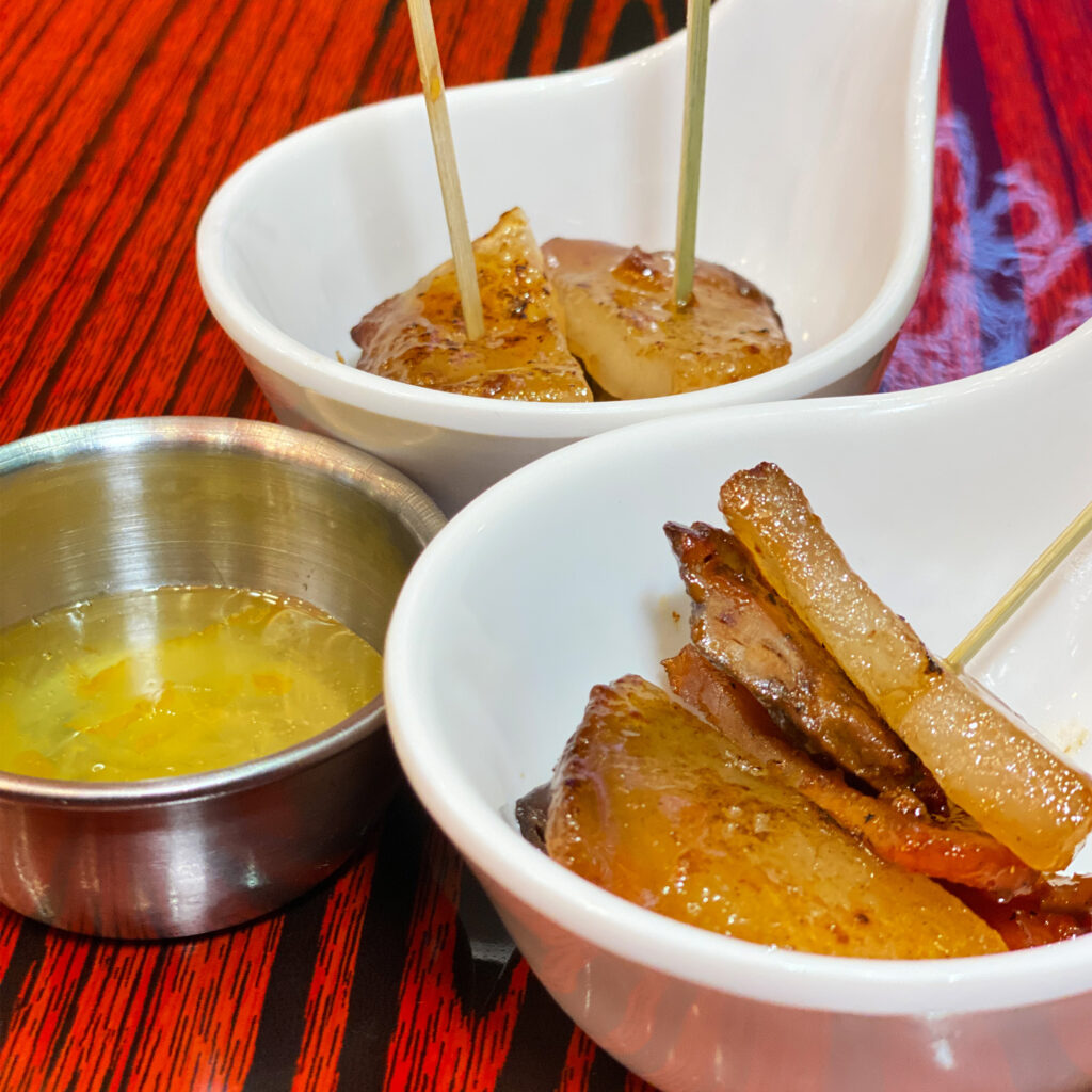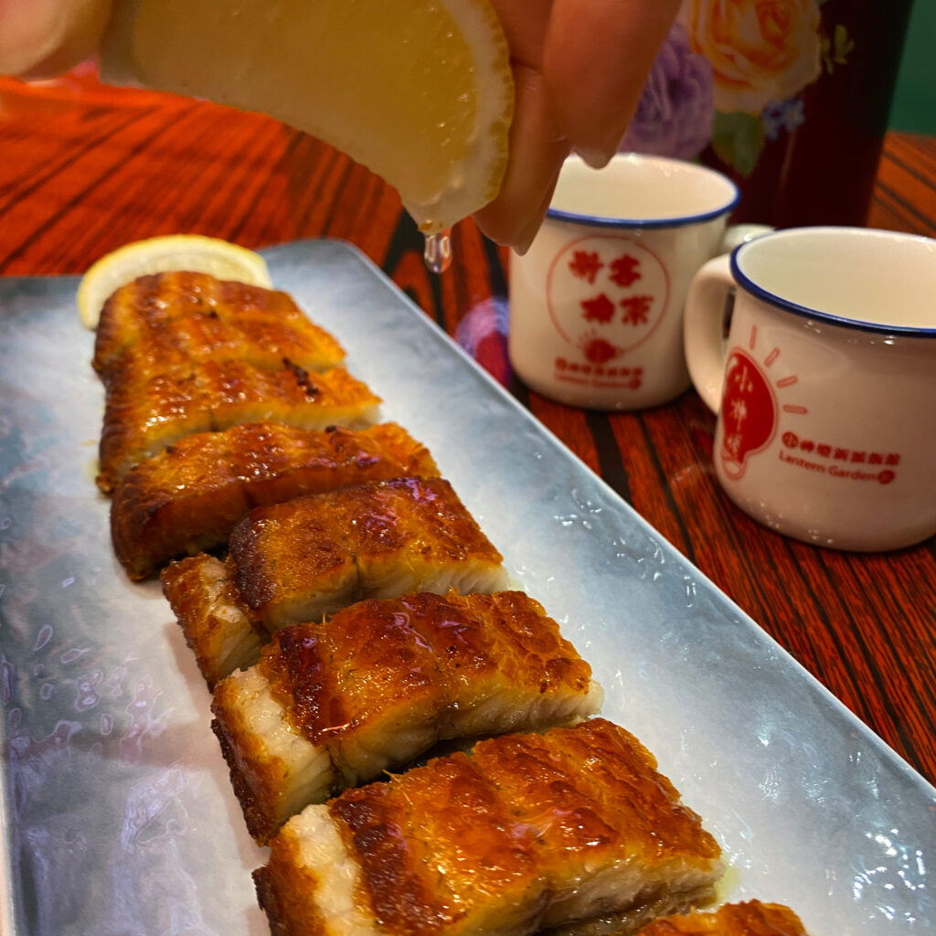 打卡過後肚子都餓了,是時候進入「正題」!先來嘗嘗前菜,筆者試的有「古法金錢雞」、「招牌焗魚腸」、「酥炸廣島蠔」以及「蜜汁脆燒鱔」,後兩者無論是經過酥炸還是燒烤,都能保持肉質鮮嫩,尤其是廣島蠔的炸皮厚薄適中,香而不油,讓人一口接一口!「古法金錢雞」則是市面比較少見的菜式,或許是因為將豬的肥油夾雜豬肝,這並非人人能夠接受,向來不吃肥油的筆者也是膽粗粗試吃,味道絕對是超出想像,肥油炸成塊狀但入口即融,配上豬肝和一小塊豬肉,反而帶出其獨特香味,令人難忘;另外眾所周知要炮製魚腸的工序繁複,且要沒有腥味也是相當考廚師工藝,然而這道招牌焗魚腸便成功顯出主廚巧手,配上烤脆的雞蛋,更是美味。