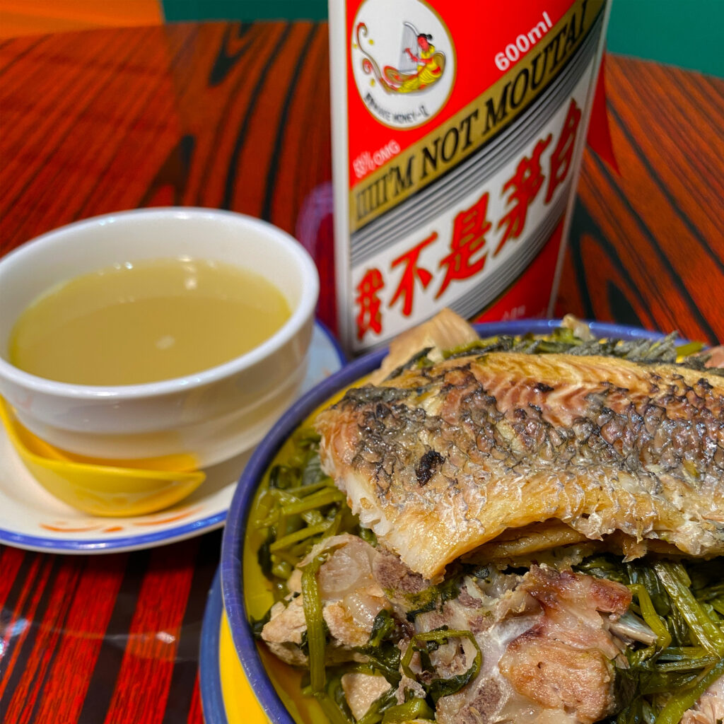 在正式享受主菜前,也應要好好「喝」一杯,茅台又會否適合大家口味?當然不是想要了你們的命,反而更是想幫大家補補身!飯館特別用上「茅台酒瓶」作器皿炮製出「我不是茅台」,實際是一壺無味精靚湯,並會根據春、夏、秋、冬四季選取時令湯料,每日新鮮煲成足料老火湯,這樣就算每天喝一壺都可以!