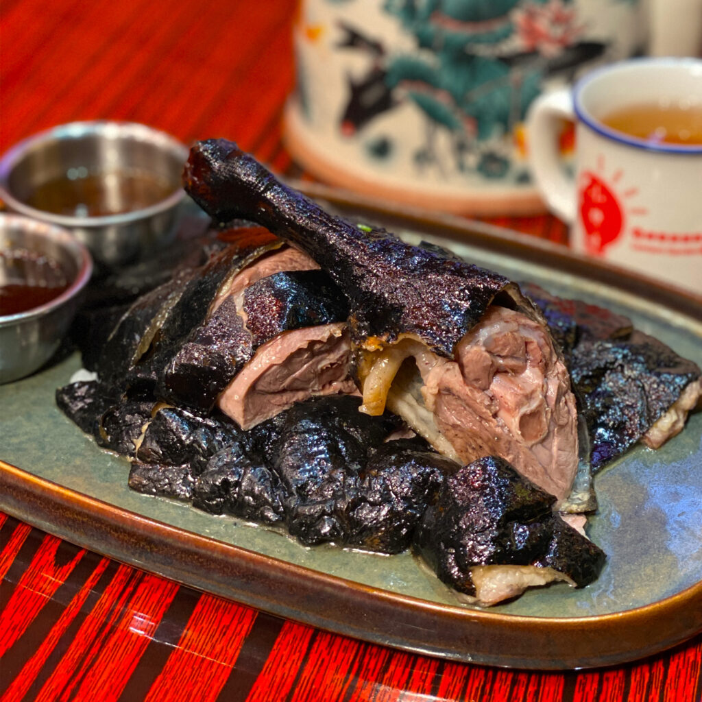 吃過前菜、喝好靚湯,要吃「正餐」了!要數地道粵菜大餐又怎少得雞和鵝?不過飯館的炮製手法就用上中西合璧,如選用重約6斤半的黑棕鵝,以黑松露及秘製醬料醃製,經風乾後再即叫即燒成「黑松露玻璃燒鵝」,鵝皮呈黑色且極之香脆,肉質嫩滑又吸滿黑松露精華。恰巧筆者並非一個黑松露愛好者但也能接受其香氣,若果很喜歡黑松露,那就不能錯過飯館的秘製法式黑松露醬,酸酸甜甜又帶有濃濃松露香;若果想吃傳統醬汁,也有利用鵝肉精華所調成的特式燒鵝汁,既提升鵝鮮又不遮蓋鵝味。