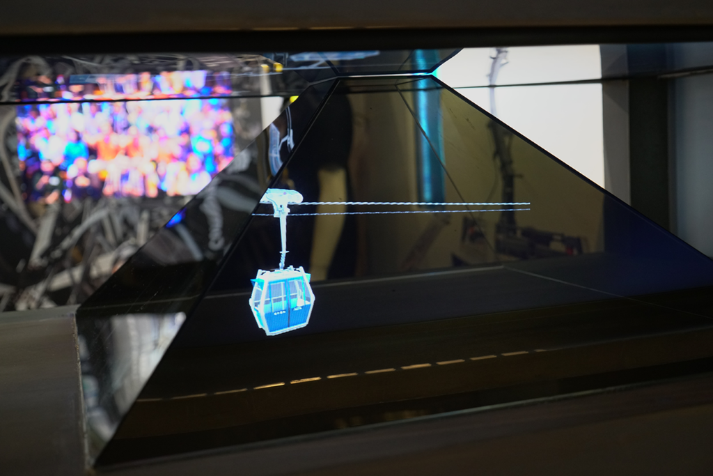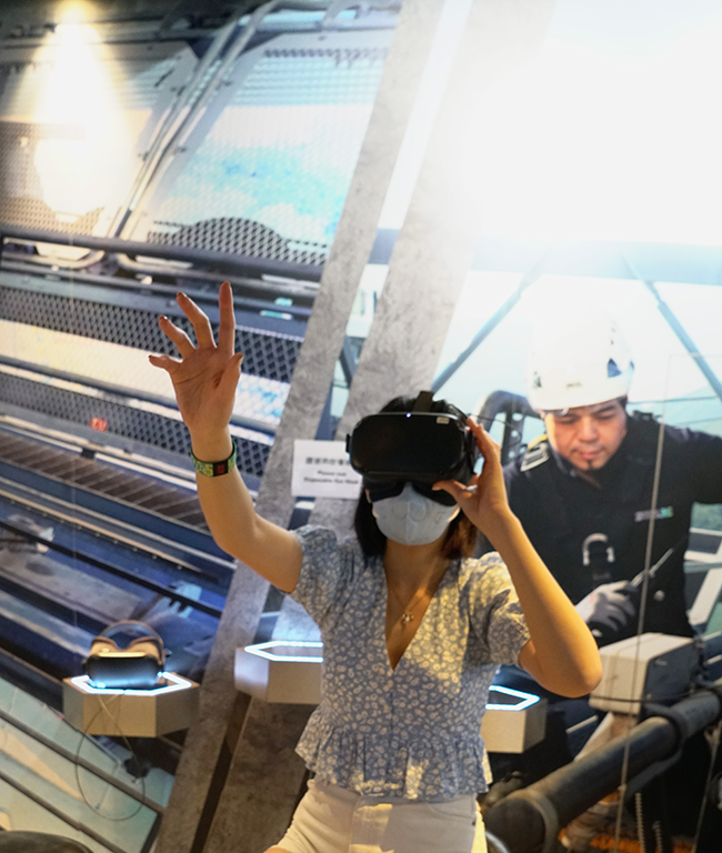 同樣位於昂坪市集的還有纜車探知館,為全港首個以纜車為主題,富娛樂及學習於一身的常設展館,具備多個展覽體驗區,館內包括纜車組件展覽區、纜車拍攝區等,呈現纜車歷史及一眾工程師的辛勞。館內更設有互動裝置,戴上特製儀器,模擬步入纜車工程禁地,Leanne興奮地戴上頭套,「真的很好玩,好像變成了工程師,參與到一項富有意義的工程項目中。」同時館內設有影院,會播放約7分鐘的影片,介紹昂坪360艱鉅的施工過程及背後的挑戰,並提供粵語及英語兩種語言,方便不同遊客。
